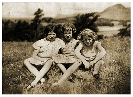 Eileen ‘s family owned a hut that sat behind the Auldmurroch Farm. There is a charming photograph of her as a small child with 3 Collie puppies, the family hut just visible to the left in the far background.