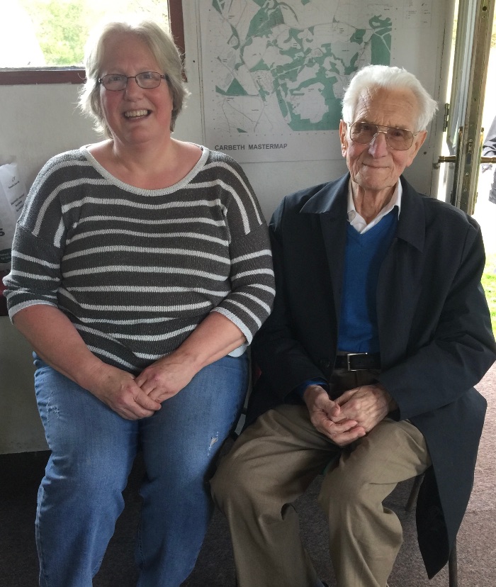 The ‘Doors Open Days’ at Carbeth were well attended. The total number of visitors was around 45 and it was great to see hutters joining the visitors during the tours. A highlight of the event was the visit by Alex McLean and daughter Betty pictured above. At 93 years of age Alex kept us all entertained with his Carbeth stories and photographs Alex had his hut in the 50’s. “It was a wee while ago” he commented “but the place sticks with you.”